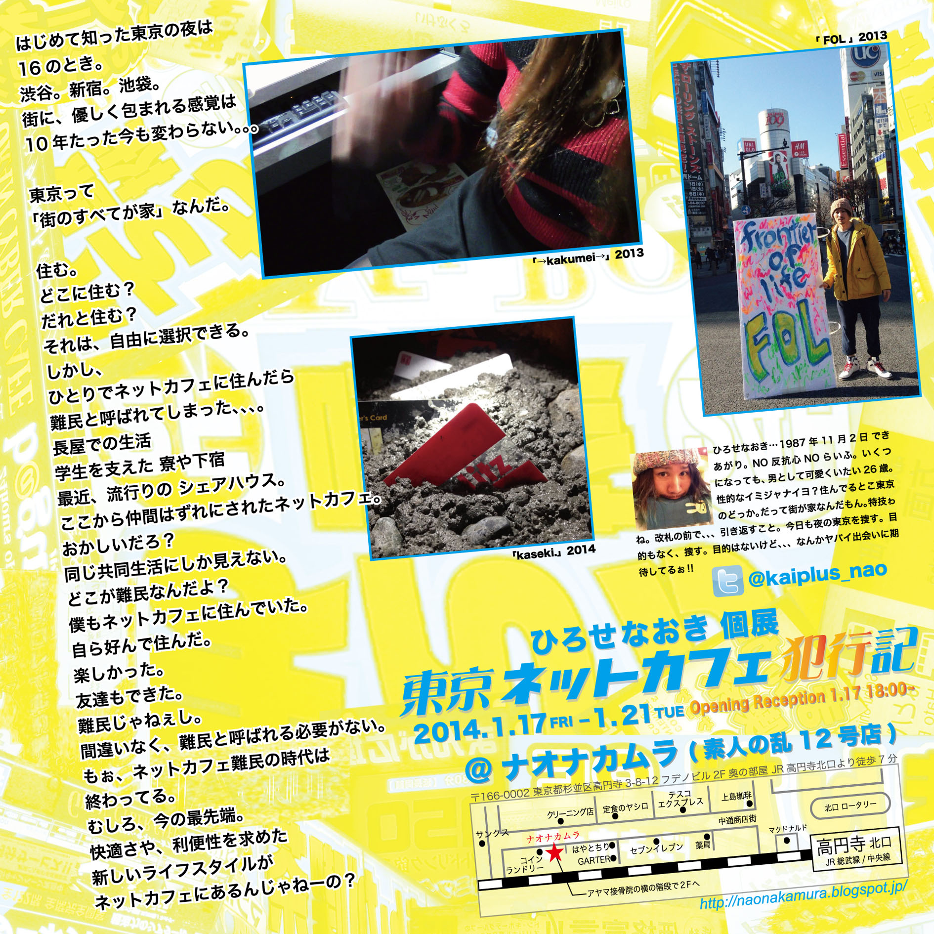 この度、高円寺にあります素人の乱12号店「ナオ ナカムラ」では、ひろせなおき個展「東京ネットカフェ犯行記」を開催いたします。